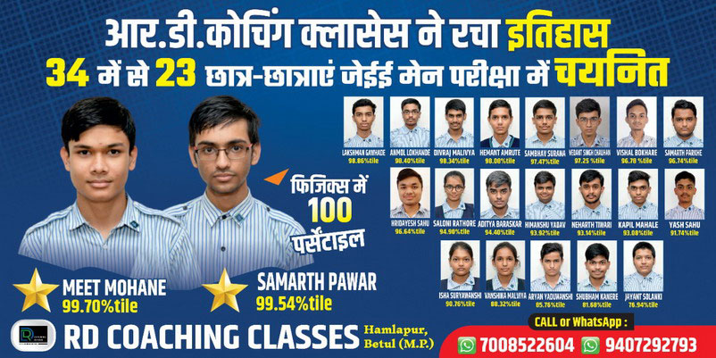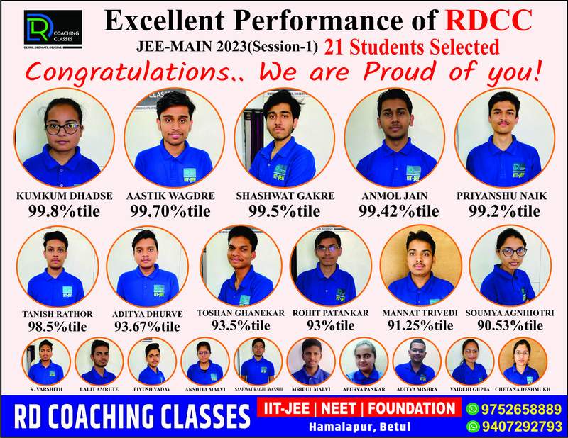 The RD Coaching Classes, Betul was founded by Mrs. Ritu Khandelwal with the vision to provide ideal launch pad for extraordinary and serious aspirants for JEE and NEET. We at RD Coaching Classes work on student’s thinking process and the approach, they applied for the problem related competitive exam. We always strive to empower the quality of education and drive transformation in the country by investing youth and catalyzing them into future leaders. It combs almost all the districts of Southern Madhya Pradesh to identify meritorious, rural students from economically underprivileged backgrounds.The students once inducted to RD Coaching Classes from class IX in residential campus at RD Coaching classes will have better future prospects and story of changing lives.