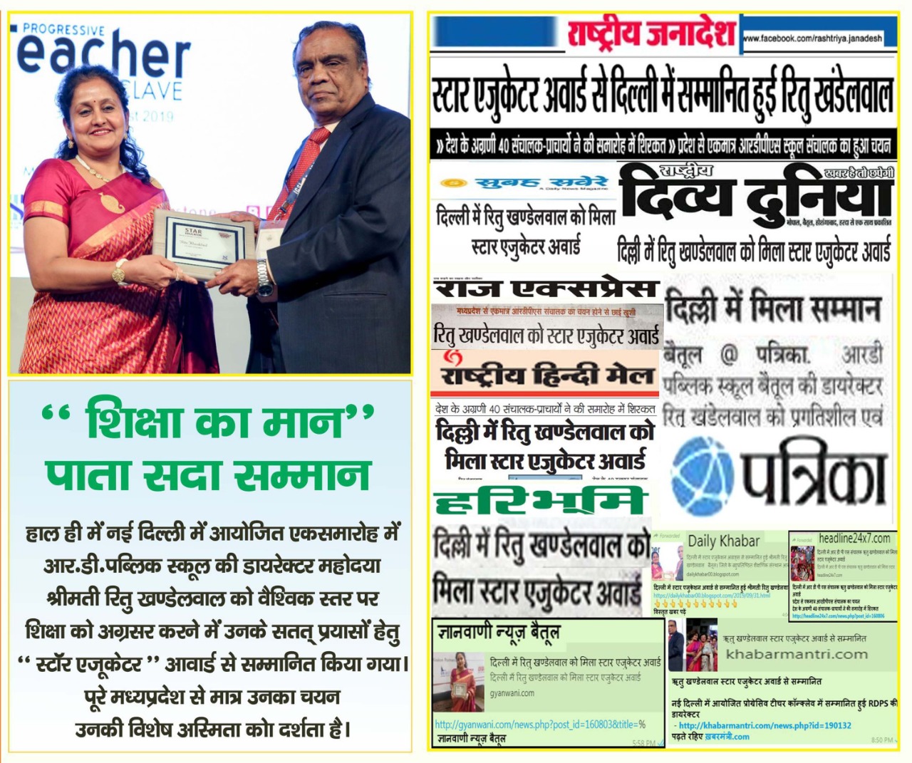 News 31 [Hon'able Director receiving Star award at New delhi. (06-Sep-19)]