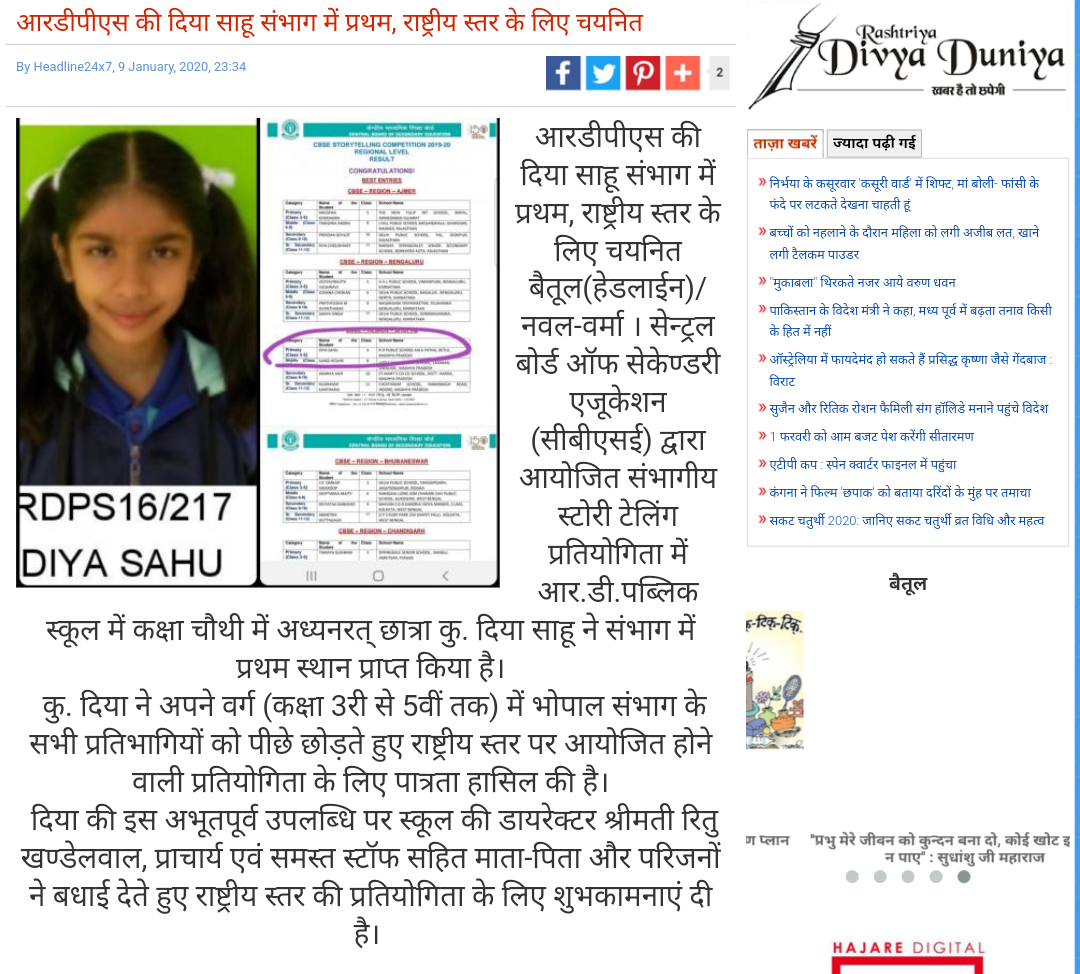 News 26 [JUNIOR EDITOR (DAINIK BHASKAR) OF RDPS BETUL 2019]