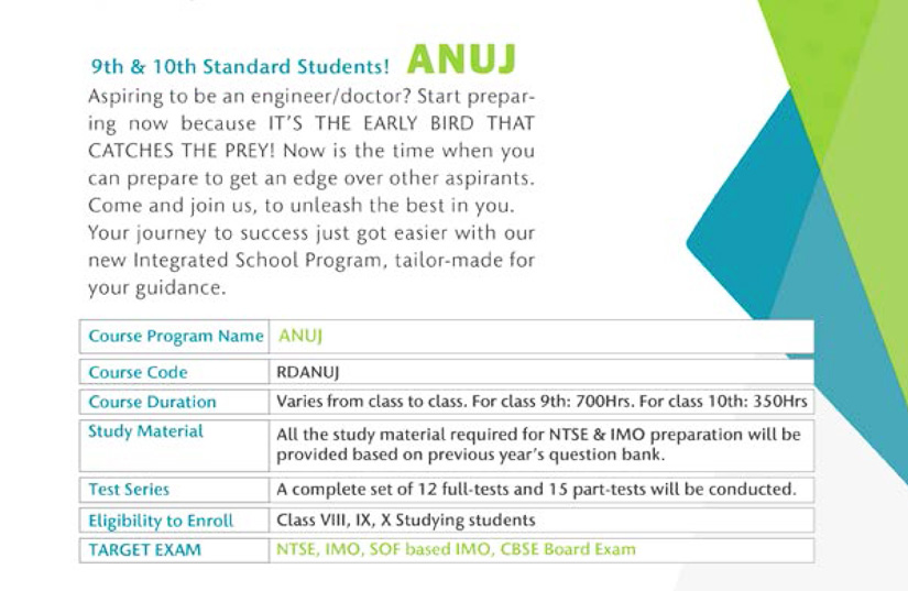 Rishit Arya of RD Coaching has scored 99.3 percentile in JEE-MAINS 2019.